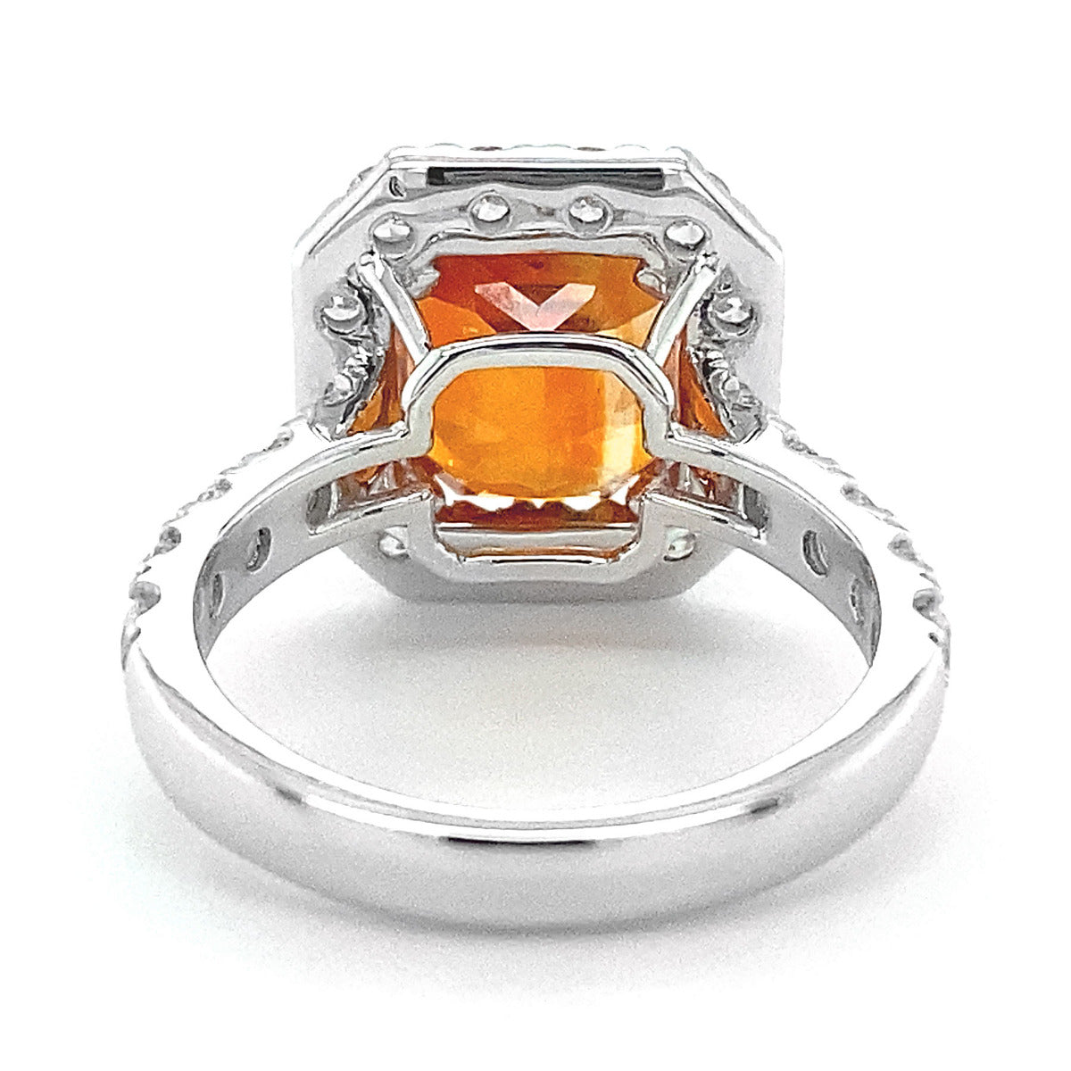 Dimaya 18K White Gold 7.67ct Orange Sapphire and Diamond One-of-a-Kind Ring
