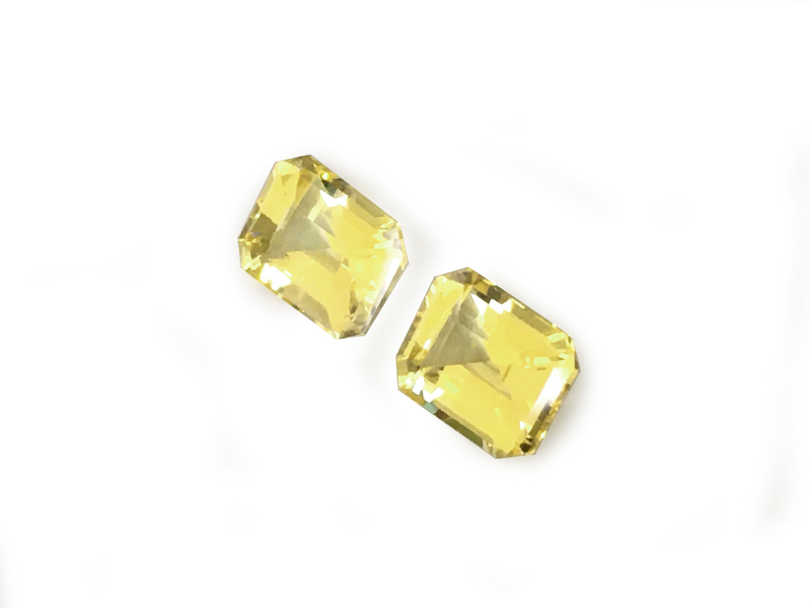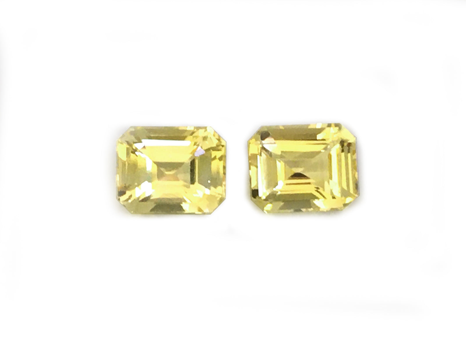 A beautiful lemon yellow fills these sapphires with a soft and gentle color. Allowing light to pass through the gems, the perfectly matched octagons are an exquisite pair for earrings. A shimmering choice that will highlight all her features, once set with diamonds, the gemstones will come alive.