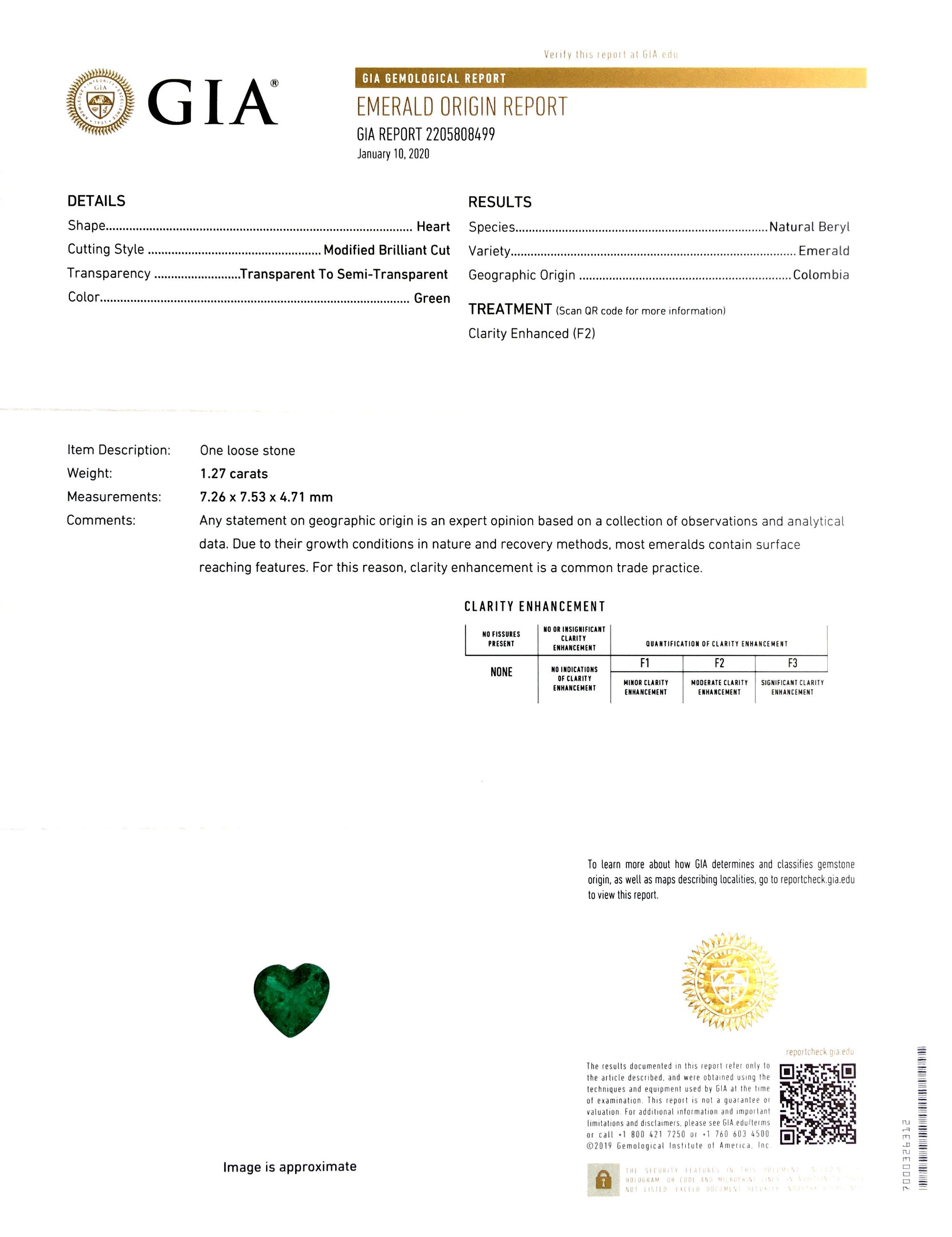 Natural Heart-shape 1.27 carat Green Emerald - GIA Certified