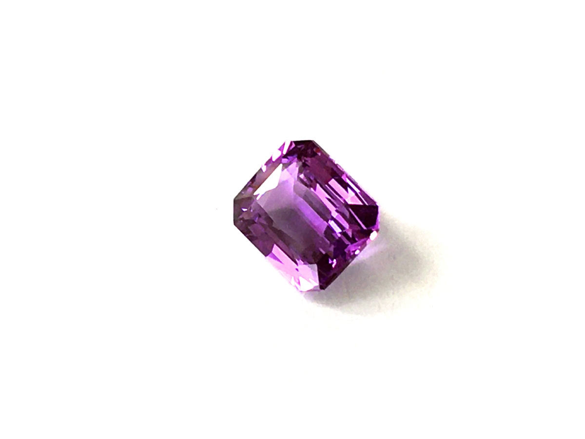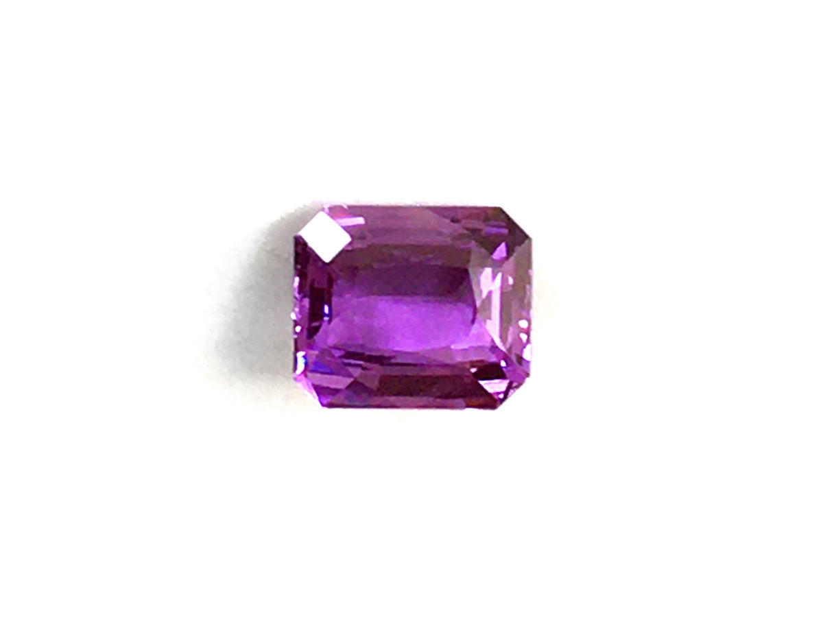 A prized gemstone, here is stunning Purple Sapphire that displays a nice even color all through the gem. Cut as an octagon at 3.28 carats here is a gemstone that adds a feminine touch to any piece of jewelry. Rich Purple dominate this gem and its brilliant cut allows light to play off perfectly on every facet.