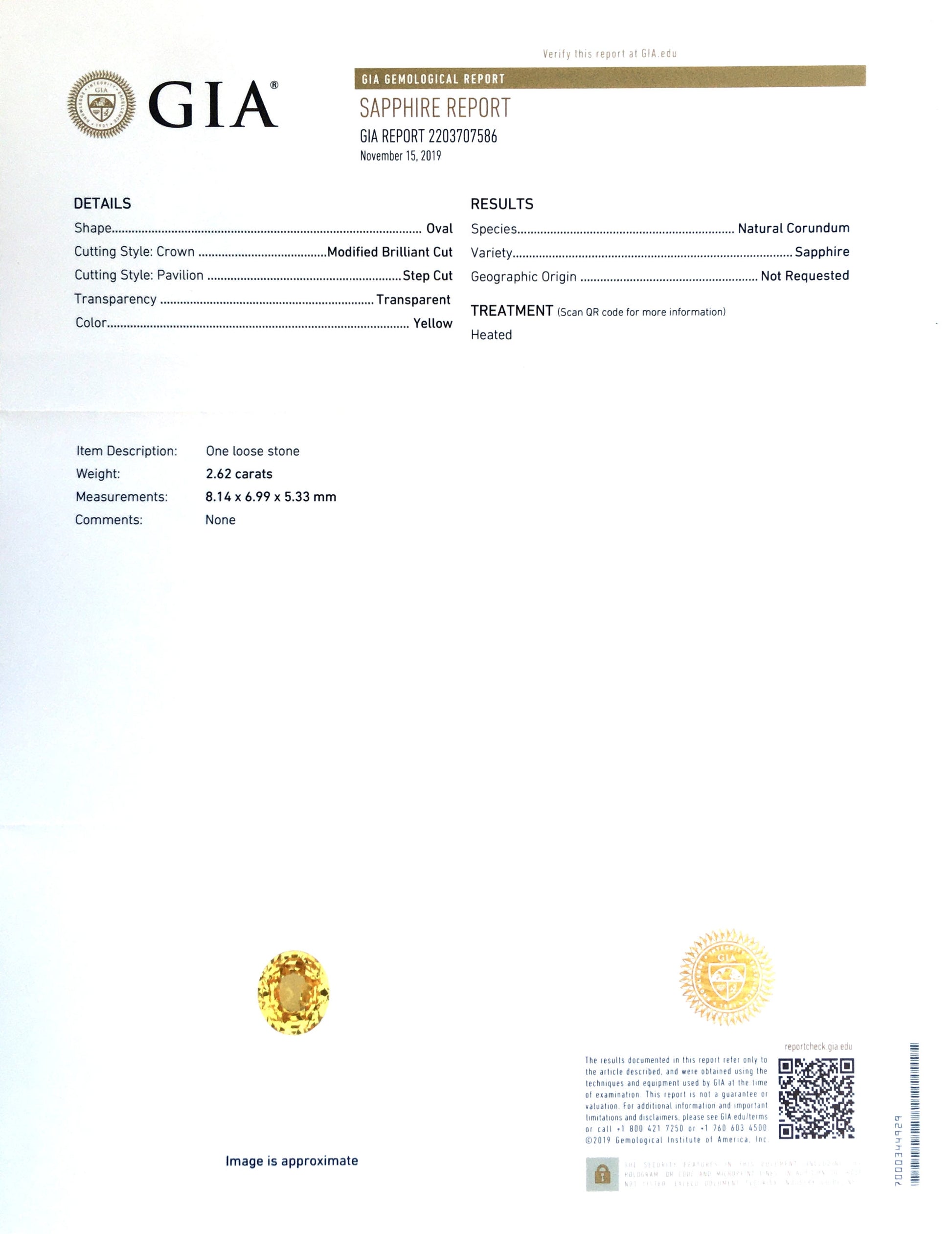Natural Oval-shape 2.62 carat Yellow Sapphire - GIA Certified