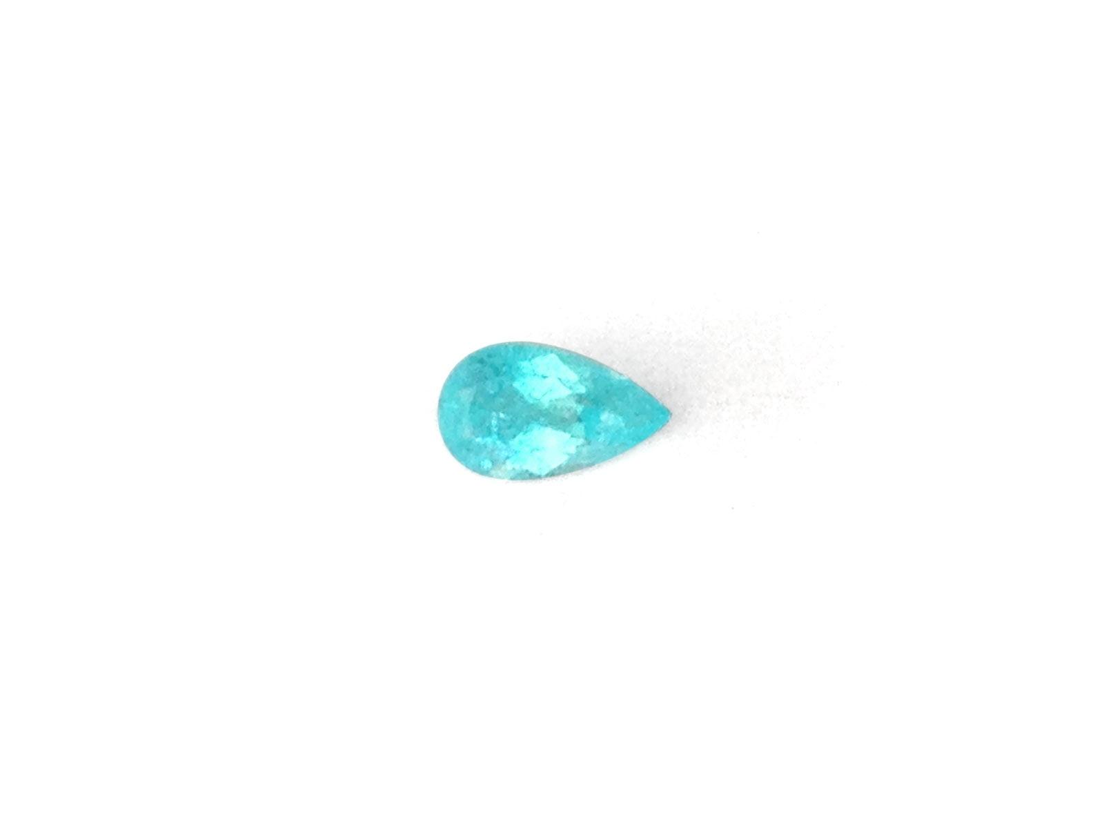 Paraiba Tourmalines fall in a different category of gemstones when it comes to striking beauty. A flush of copper rich, neon turquoise fills this 0.50 carat pear shaped gemstone leaving you lost for words when you see it. A nice even tone paired with its elegant shape will make it an ideal gemstone for an engagement ring.