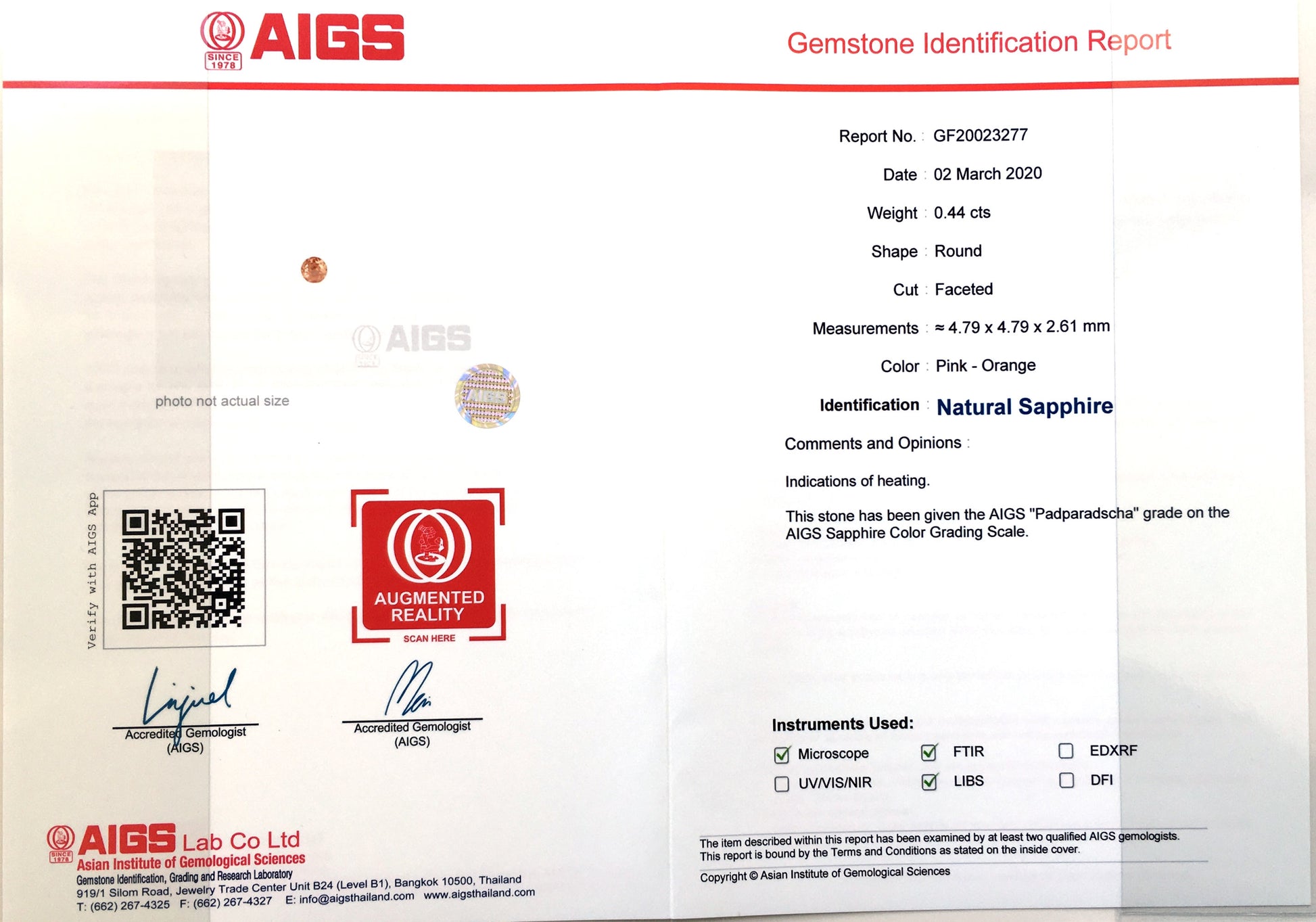 Natural Round-shape 0.44 carat Pink-Orange Padparadscha Sapphire - AIGS Certified