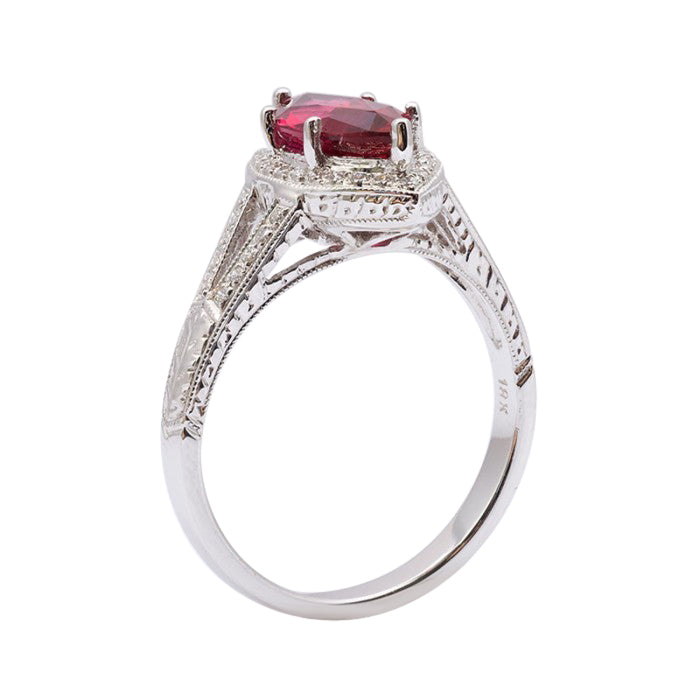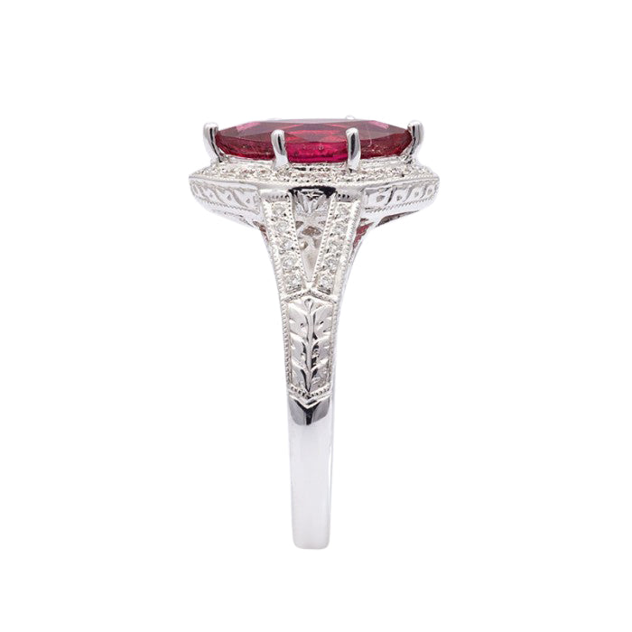 18k White Gold 1.69ct TGW Rubellite and Diamond Engagement Ring