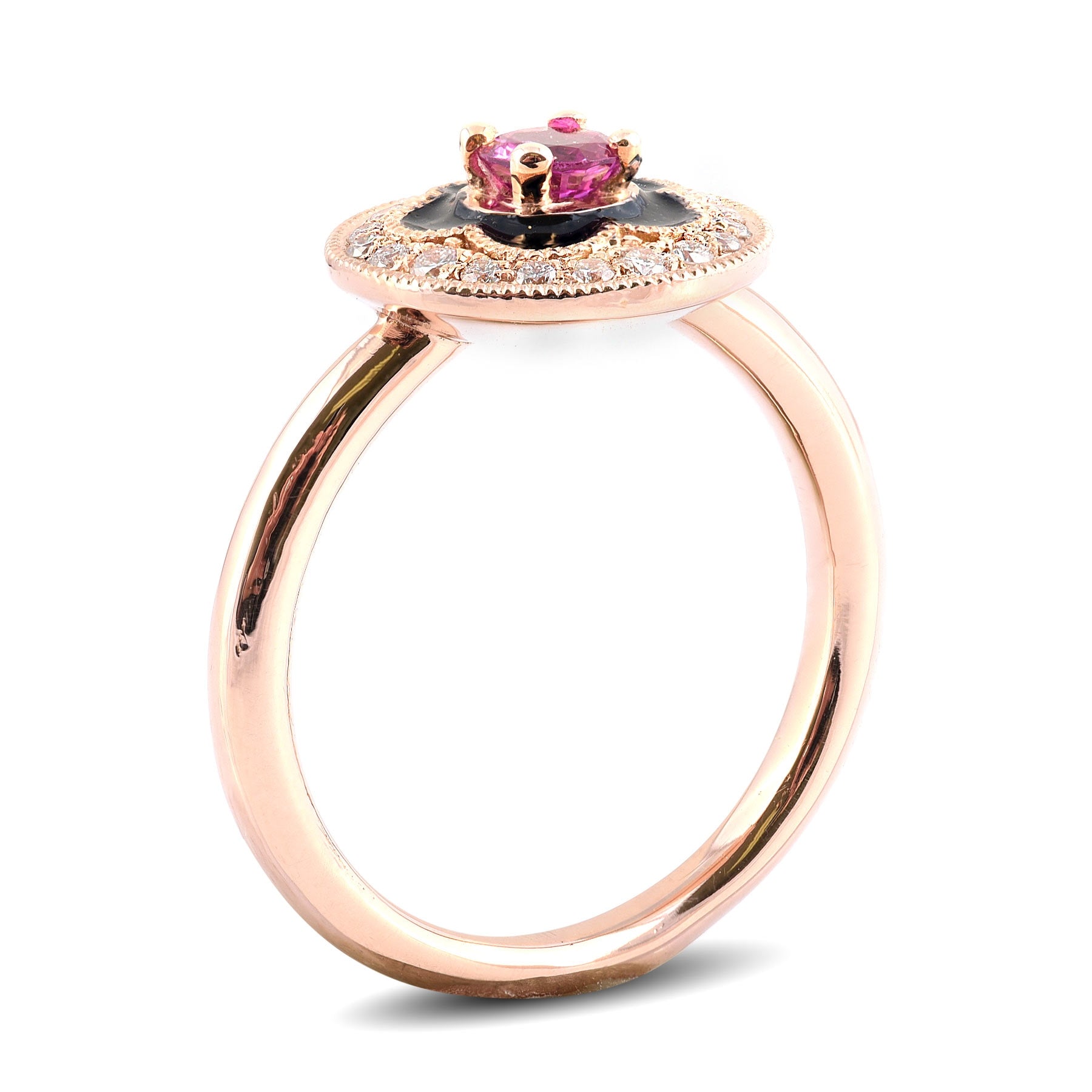 14K Rose Gold 0.46ct TGW Pink Sapphire and Diamond Enamel Halo Ring