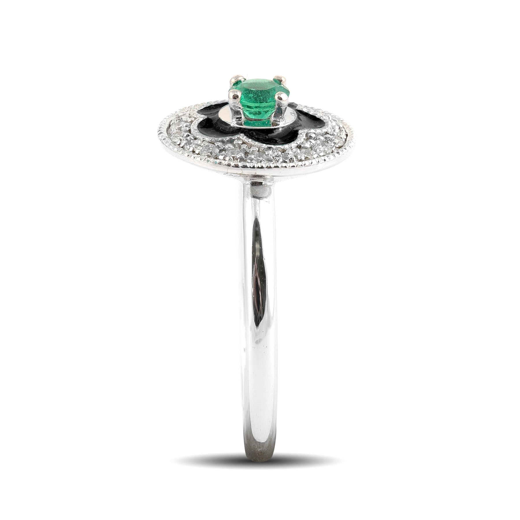 14K White Gold 0.35ct TGW Green Emerald and Diamond Enamel Halo Ring