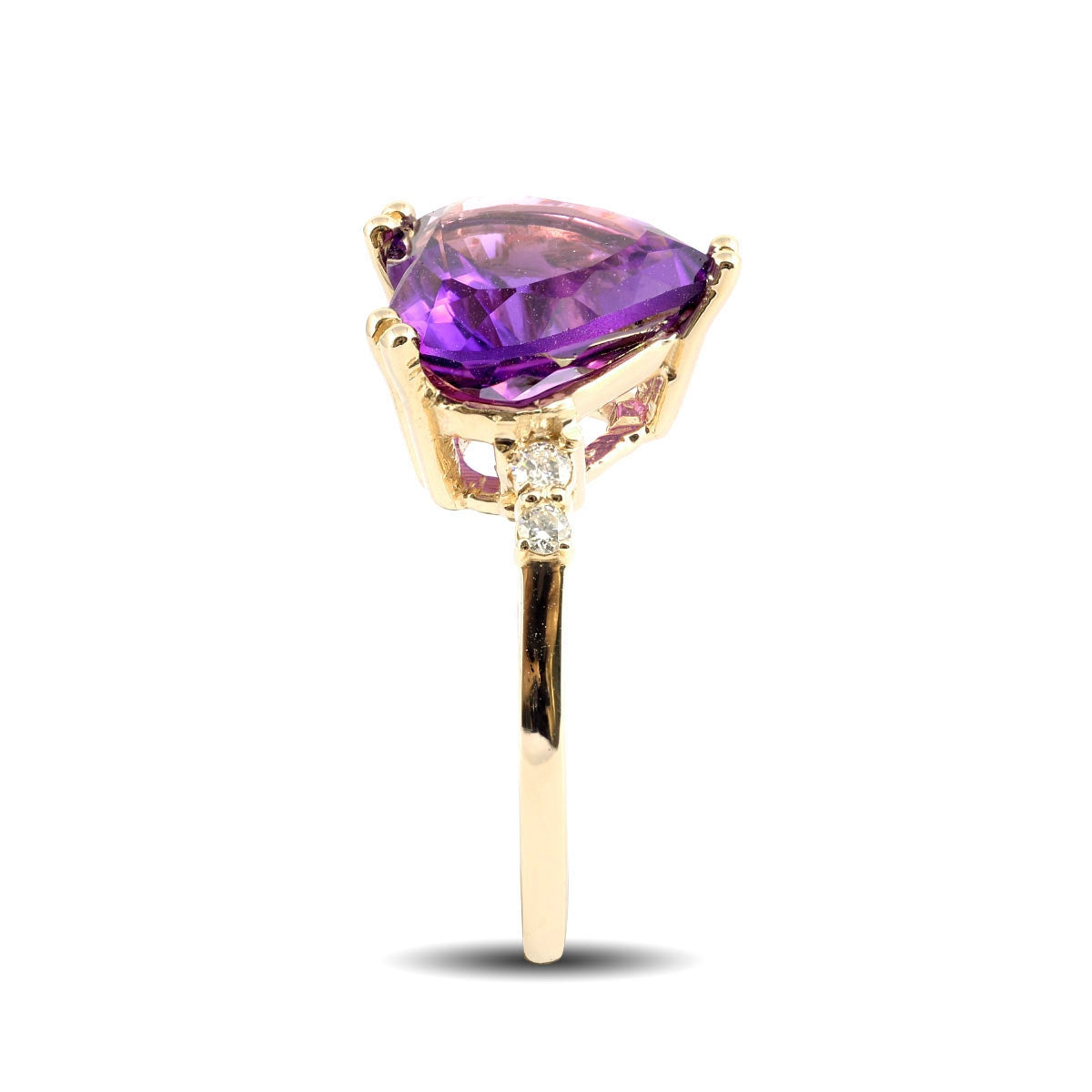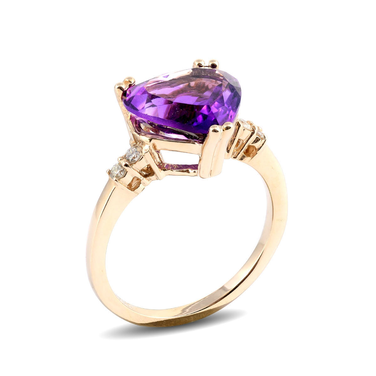 14K Yellow Gold 2.54ct TGW Amethyst and Diamonds Heart-Cut One of a Kind Ring