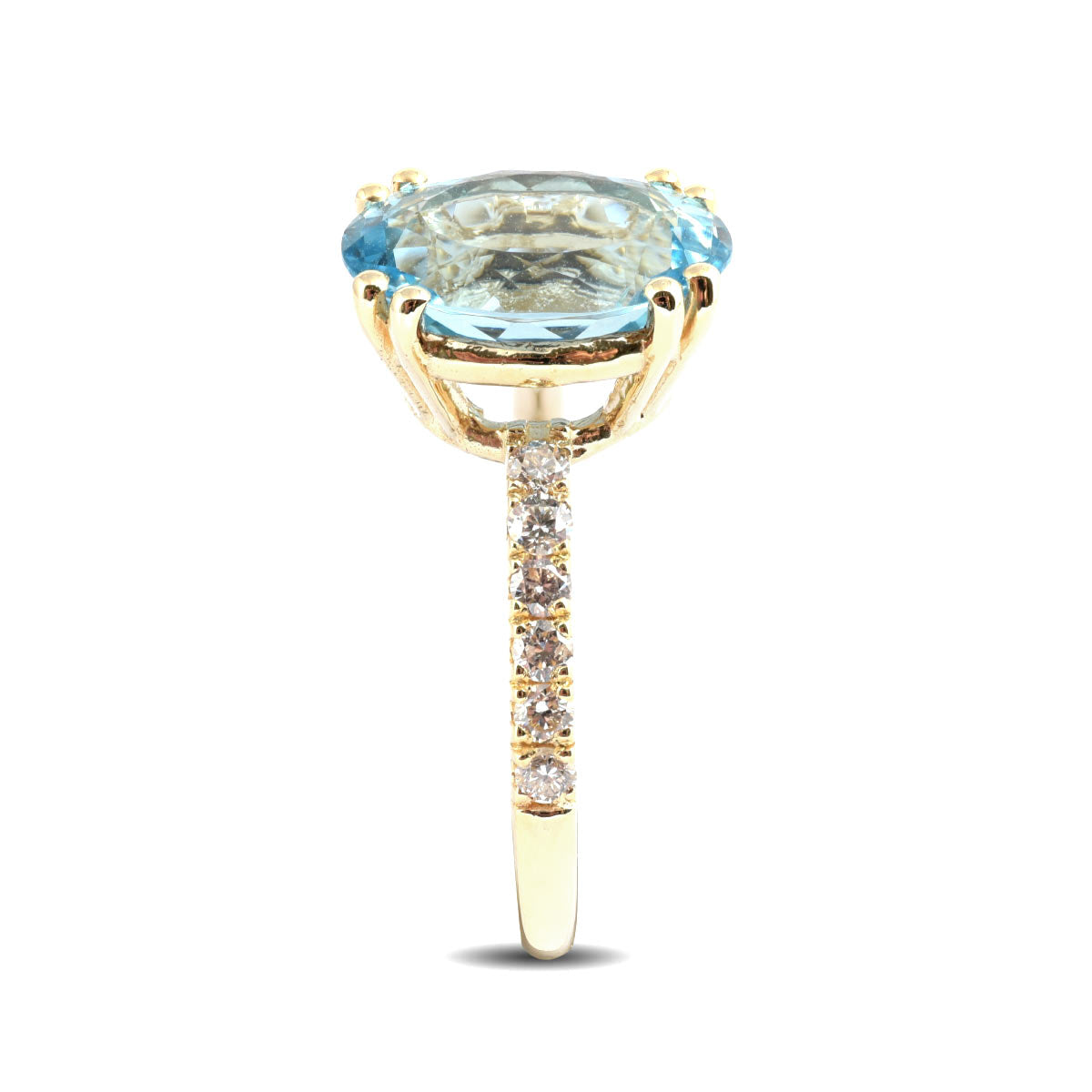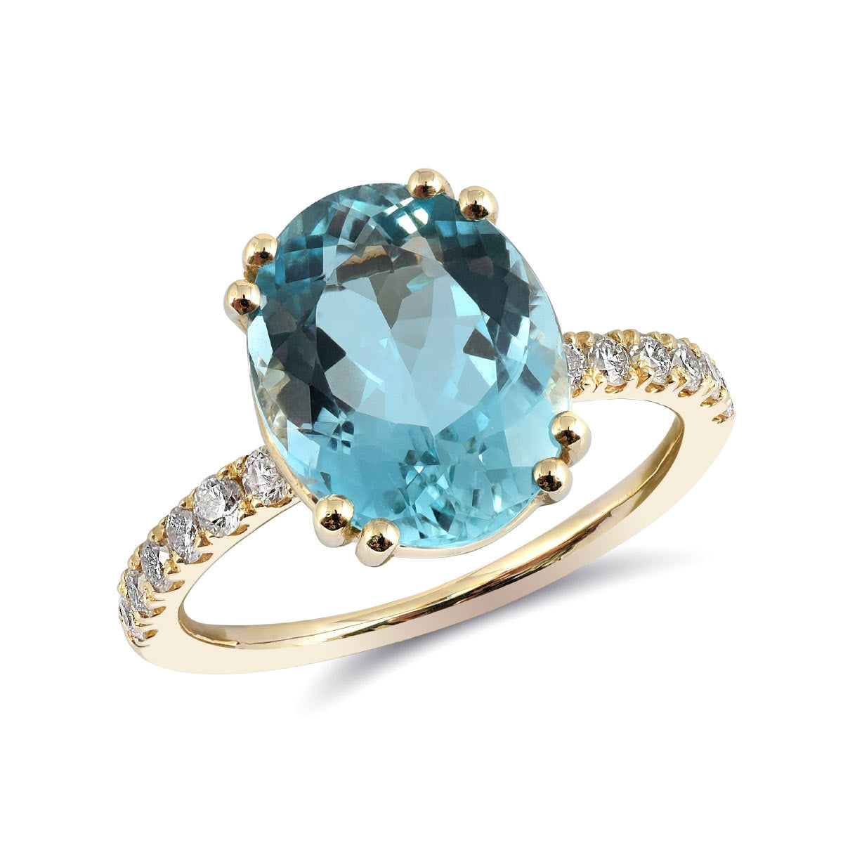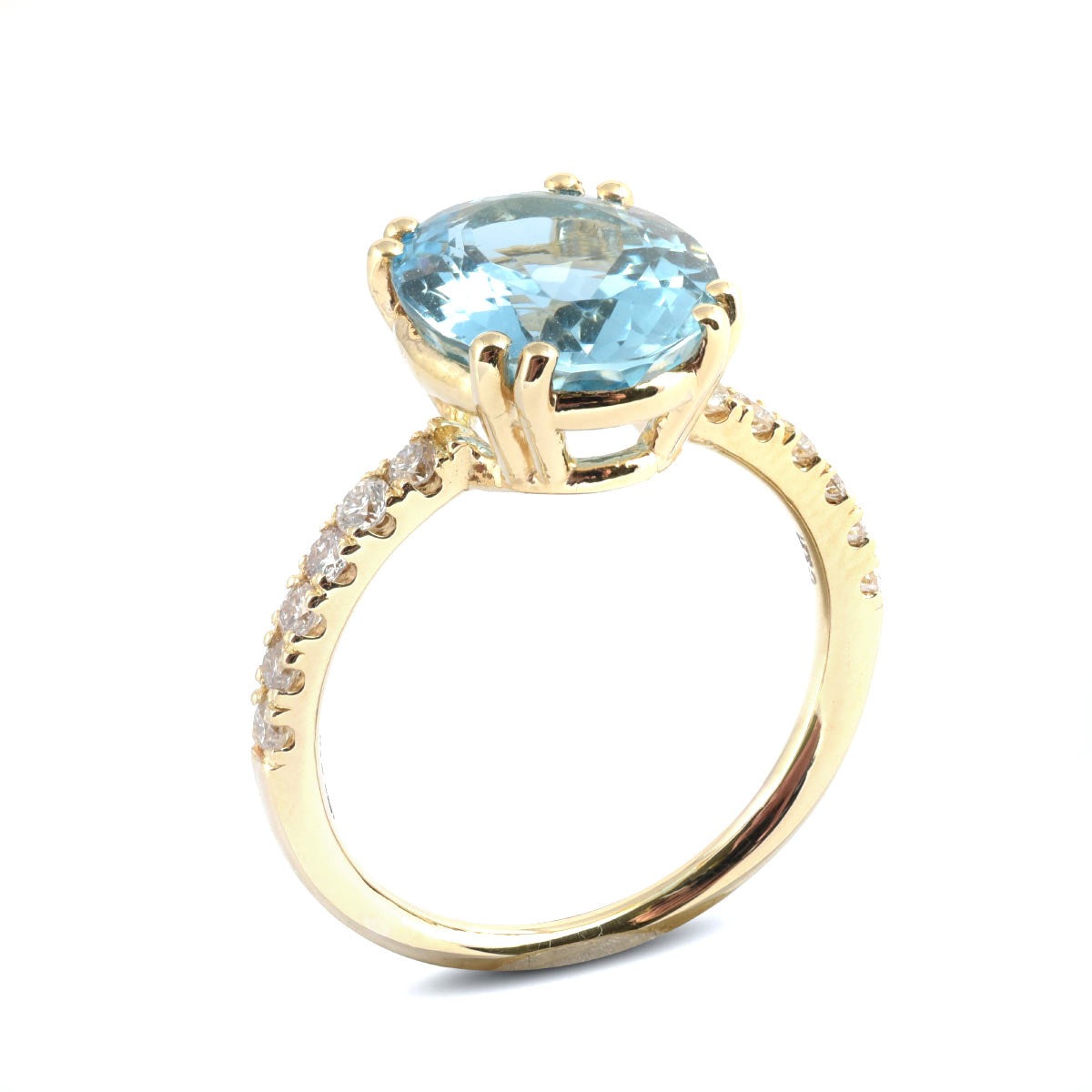 14K Yellow Gold 3.48 TGW Aquamarine and White Diamonds One-of-a-Kind Ring