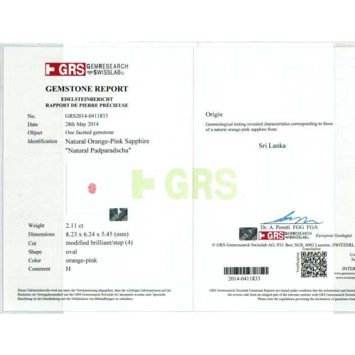 - 1 Oval-shape natural Padparadscha Sapphire from Madagascar weighs 2.11 carats