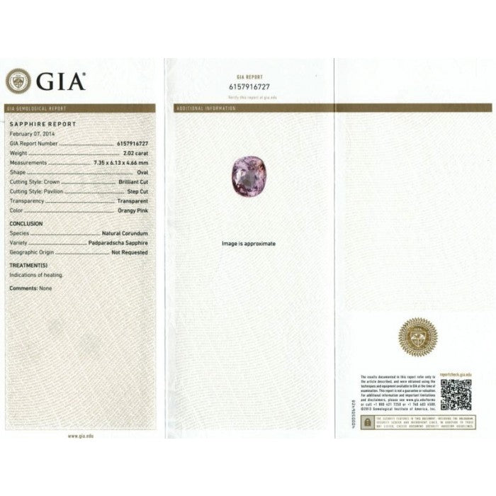 - 1 Oval-shape natural Padparadscha Sapphire from Sri Lanka weighs 2.02 carats