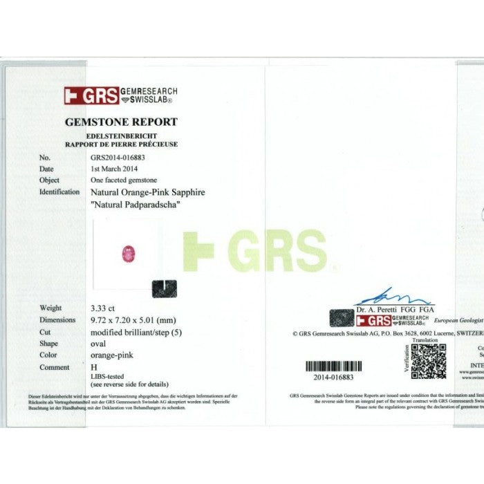 - 1 Oval-shape natural Padparadscha Sapphire from Sri Lanka weighs 3.33 carats